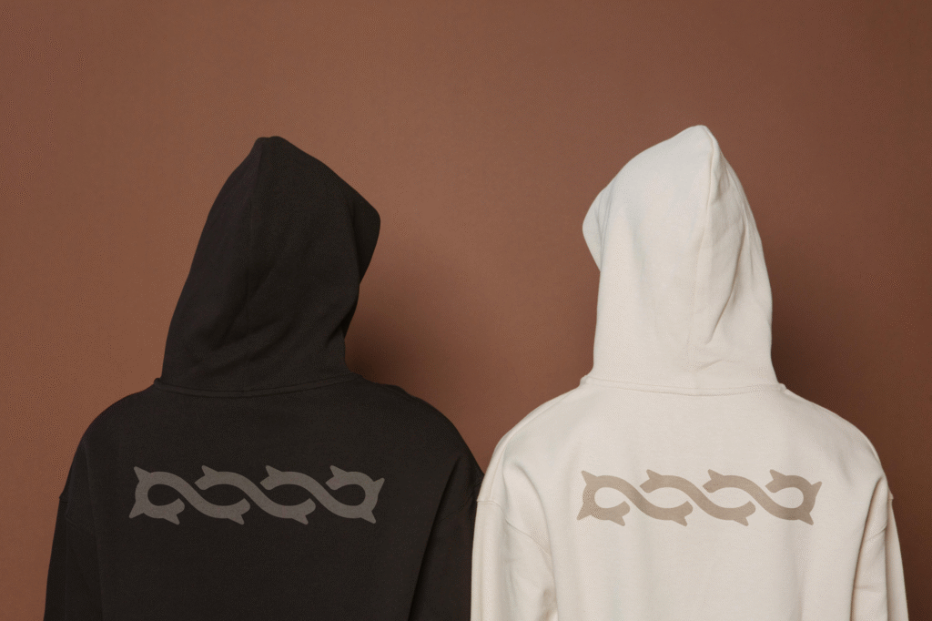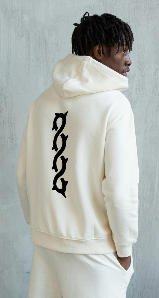 The final logo balances spiritual symbolism with a streetwear edge. Its bold silhouette reads clearly at any scale — from embroidered patches on hoodies to digital use across social media. The repetition and flow of the line create an almost rhythmic movement, mirroring the cyclical nature of growth and faith. By pairing gothic inspiration with clean geometry, the brand achieves a tone that’s equal parts devotion and rebellion — a perfect reflection of its message.